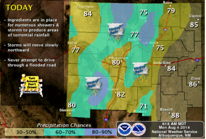 A flash flood warning is in effect Monday across central and western New Mexico. Recent rains have already saturated the ground creating prime conditions for flooding.