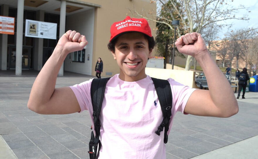 The sky was grey as scores of students at the University of New Mexico gathered today to protest the inauguration of President Donald Trump. Speakers took turns at a microphone, promising scrutiny and resistance to his administration. A handful of patriotic pro-Trump students turned up, too.